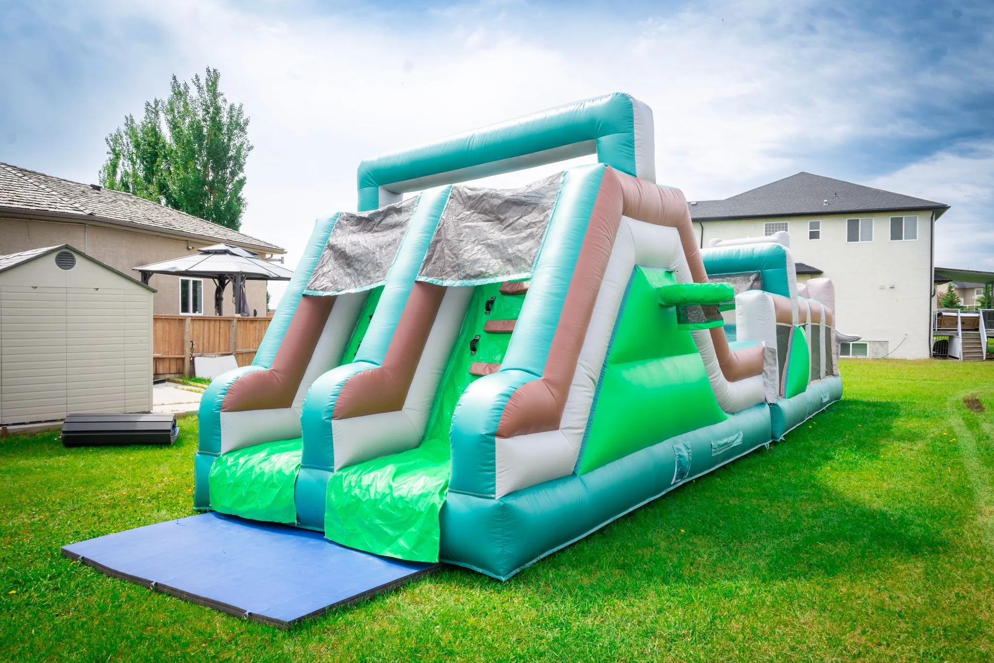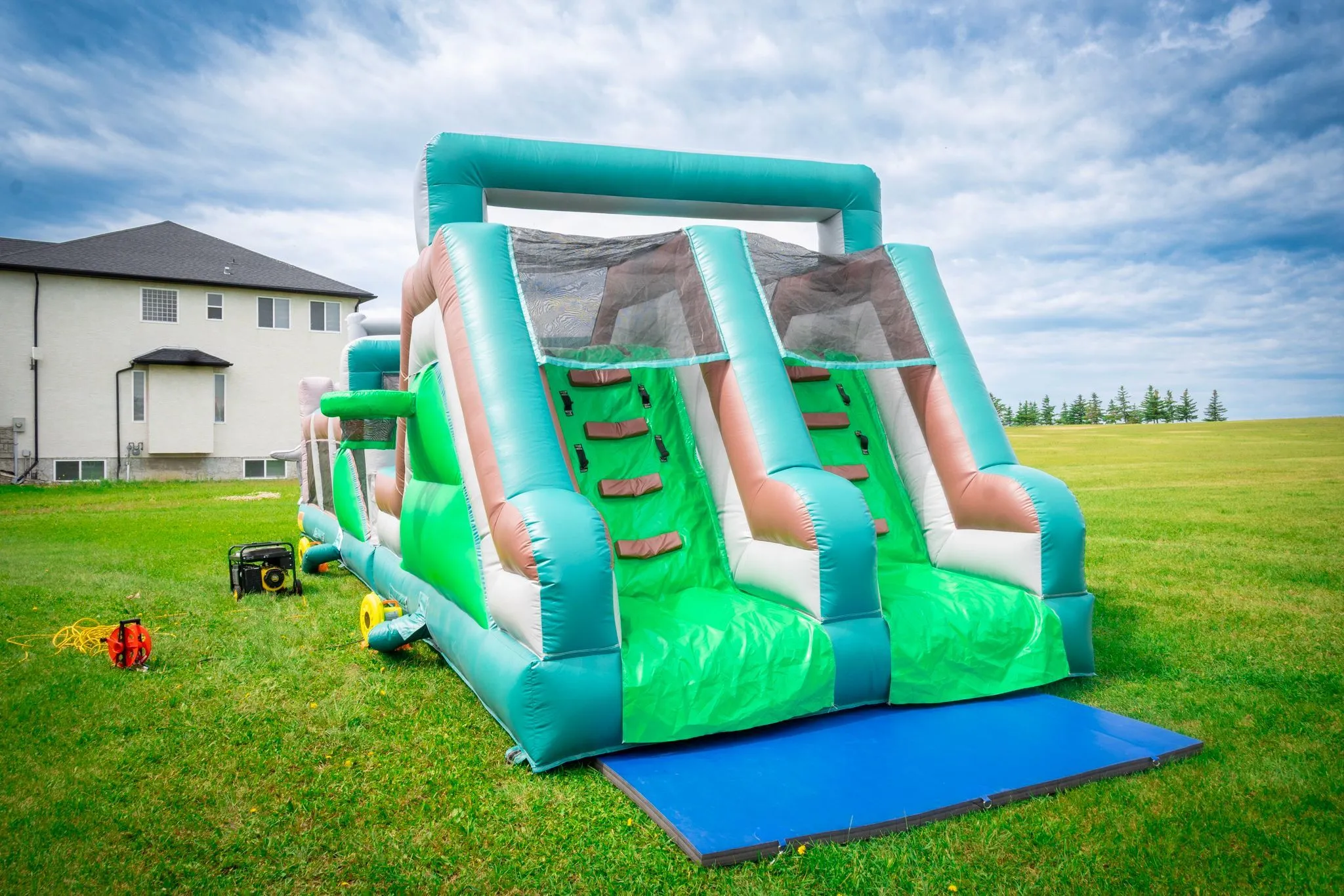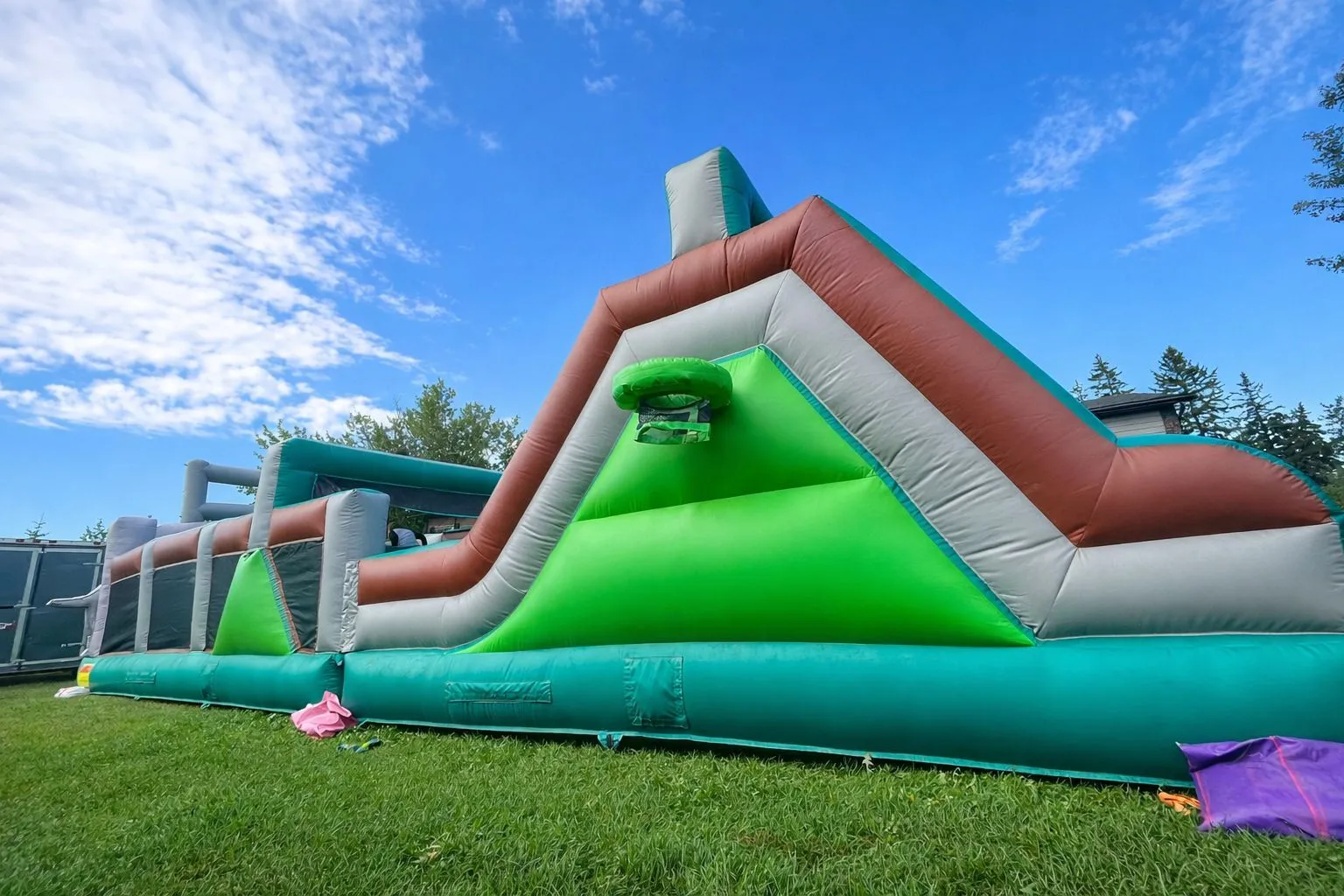 Embark on a prehistoric adventure like no other with our colossal 45-foot Jurassic Kingdom Obstacle Course! Towering above the landscape, this inflatable marvel transports you back to the age of the dinosaurs. Navigate through tunnels, climb over obstacles, and slide down the gigantic slide for an exhilarating experience that will ignite your imagination and unleash your inner explorer. Are you ready to conquer the Jurassic challenge and bounce your way to victory?