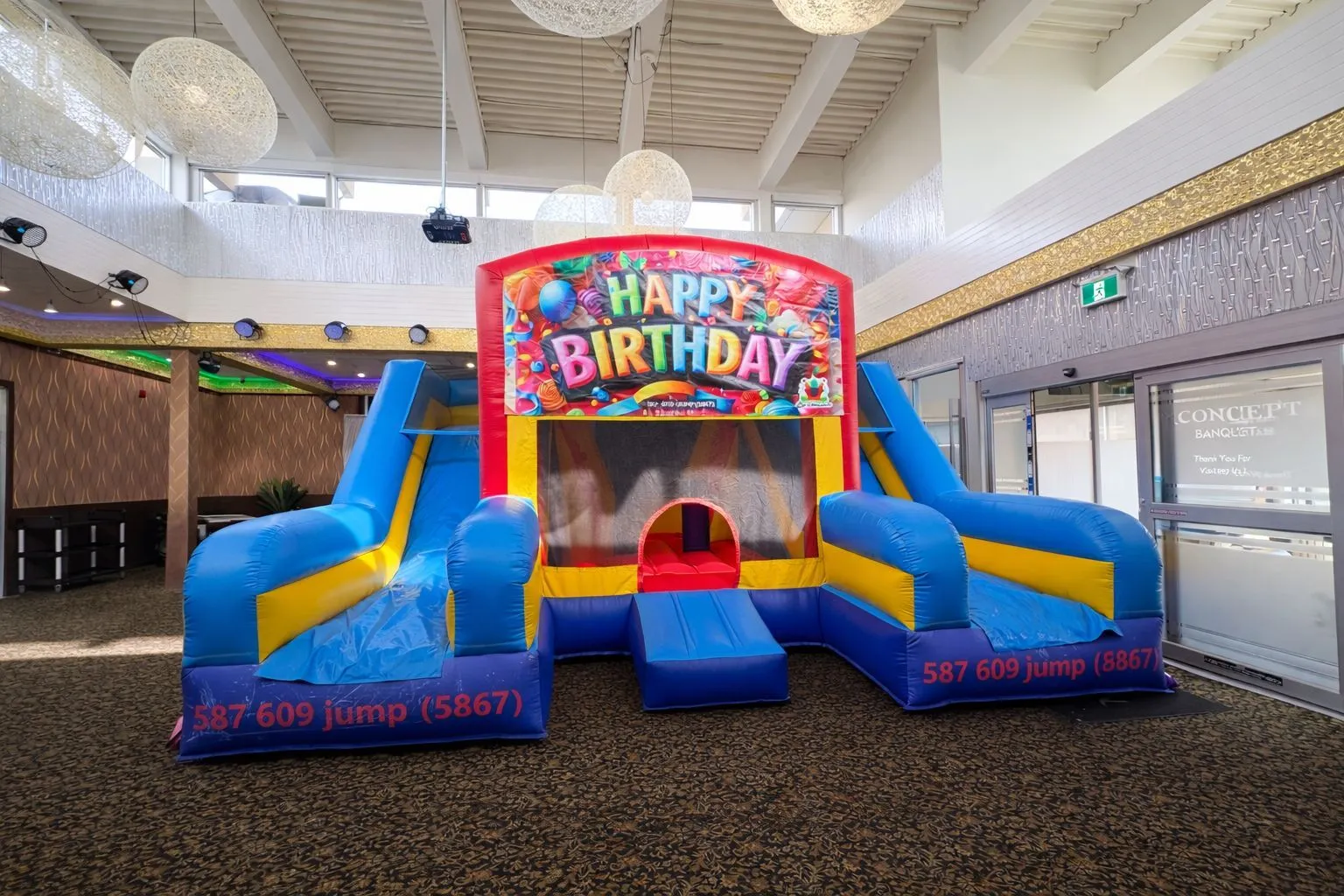 This 28 by 15 foot bouncy castle packs a punch with not one, but two exhilarating slides ready to thrill your little ones.